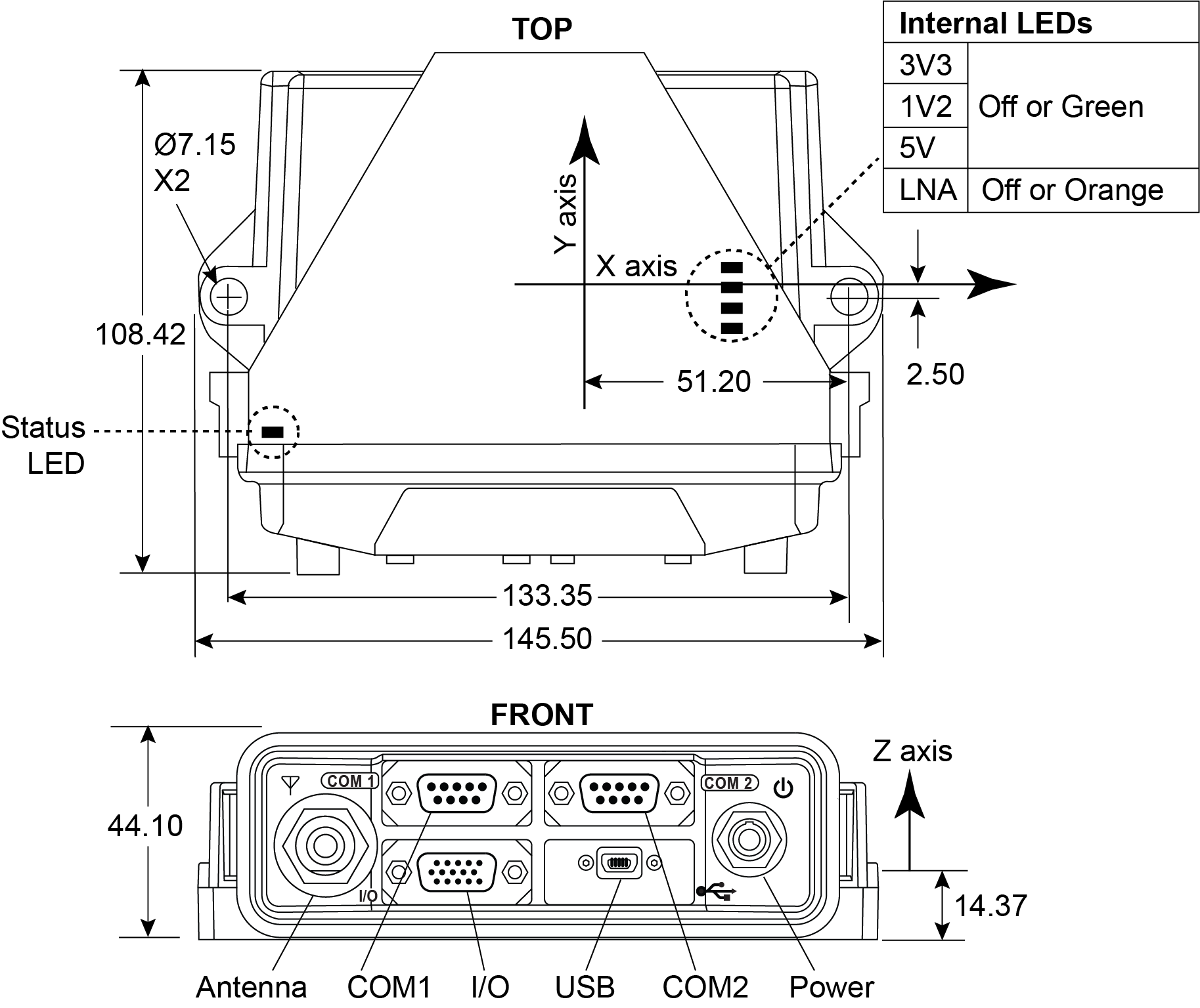 Antenna input connector, 50 Ω nominal impedance The OEM7500 Evaluation Kit provides +5 VDC (±5%,100 mA max) to a connected antenna/LNA Connector type: TNC female jack |
