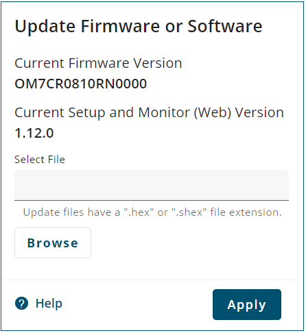 The Current Firmware Version field shows the version of the software loaded on the receiver. The Current Manage Web Version field shows the version of the Manage Web software loaded on the receiver.