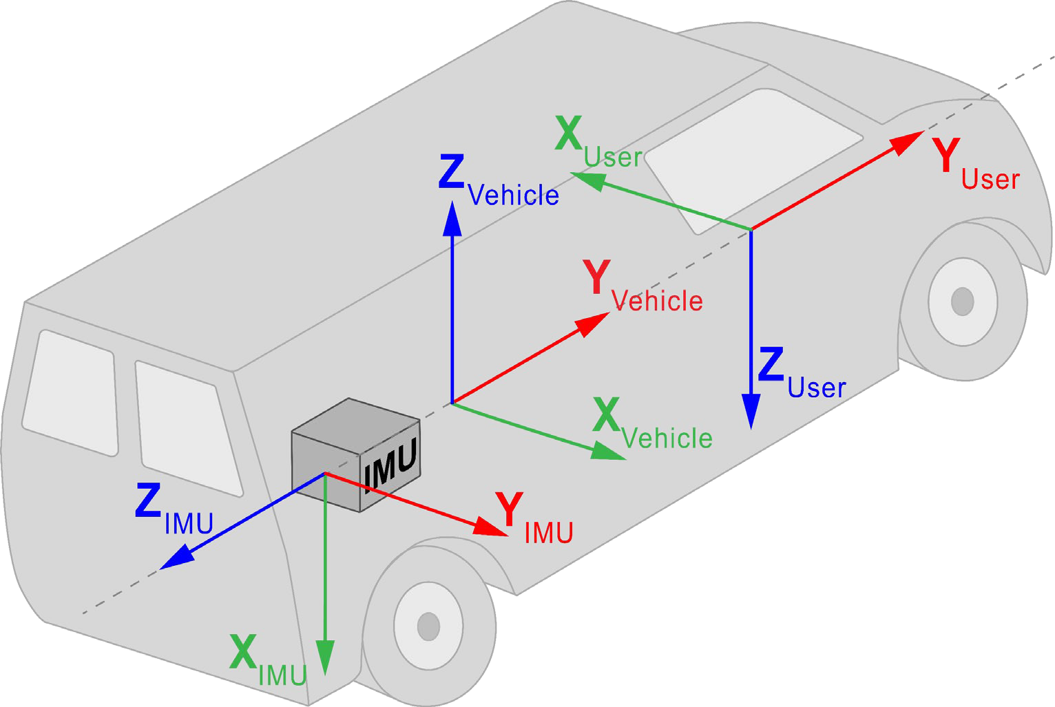 Example for manual configuration using Figure: IMU, vehicle and user rotation example: